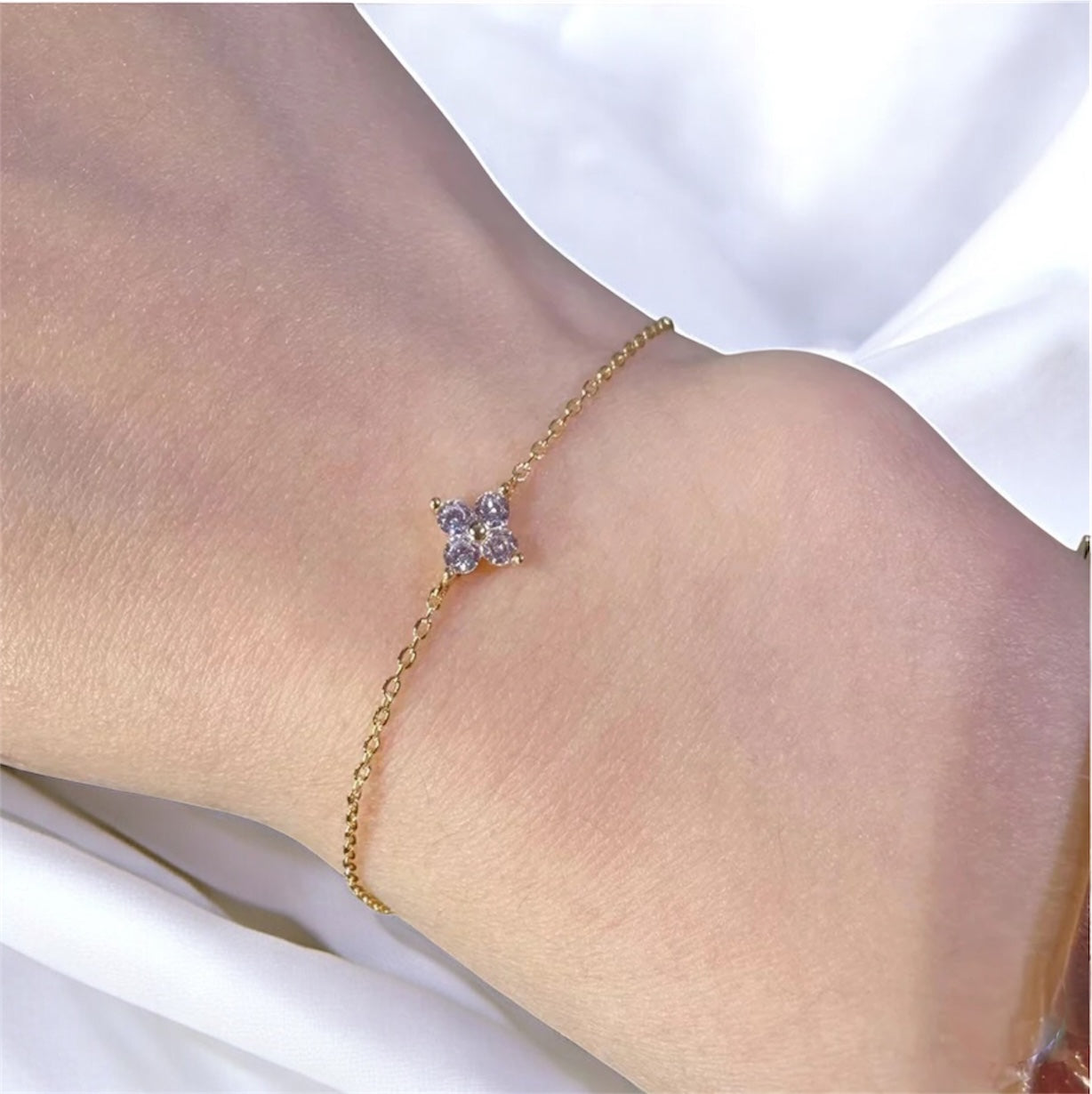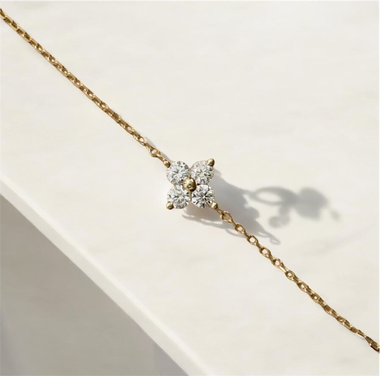 Minimal 18k gold bracelet with a petite CZ flower. Lightweight, feminine, and timeless.