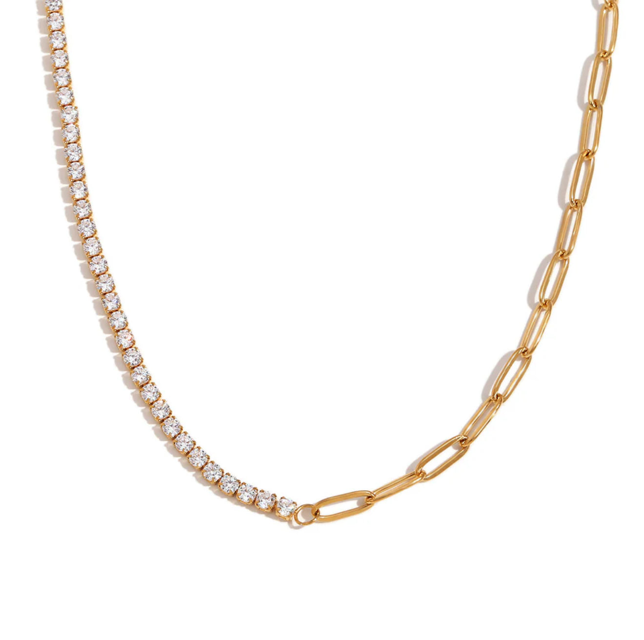 The Ona Necklace makes minimalism feel powerful. Featuring a polished circular pendant suspended from a delicate chain, it’s crafted from stainless steel and finished in radiant 18k gold plating for durability and shine. The clean, sculptural form adds quiet strength to any neckline — perfect for layering or styling solo.