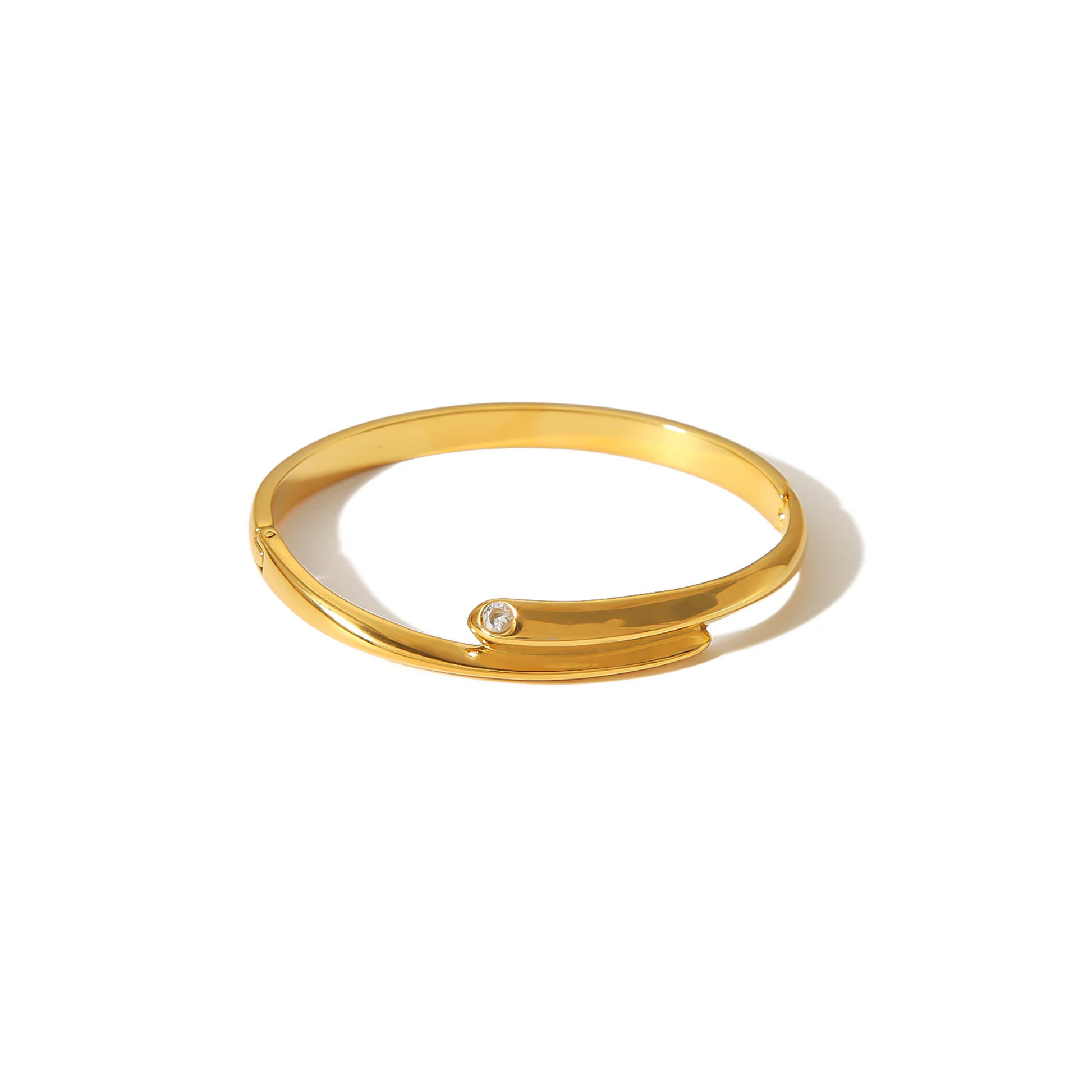 Asymmetrical elegance with a hint of sparkle — crafted in stainless steel and finished in radiant 18k gold.