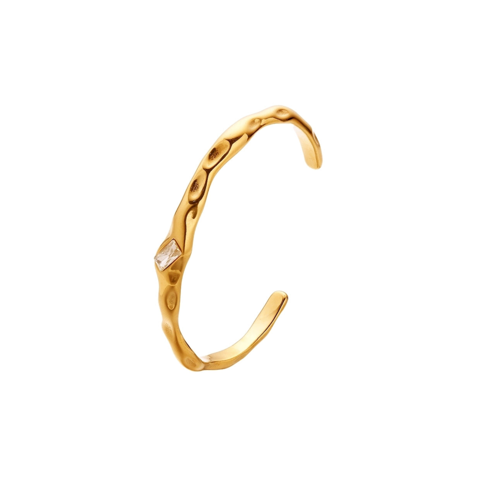 Bold yet minimal — an irregular-shaped 18k gold bangle crafted in stainless steel for everyday strength and style.