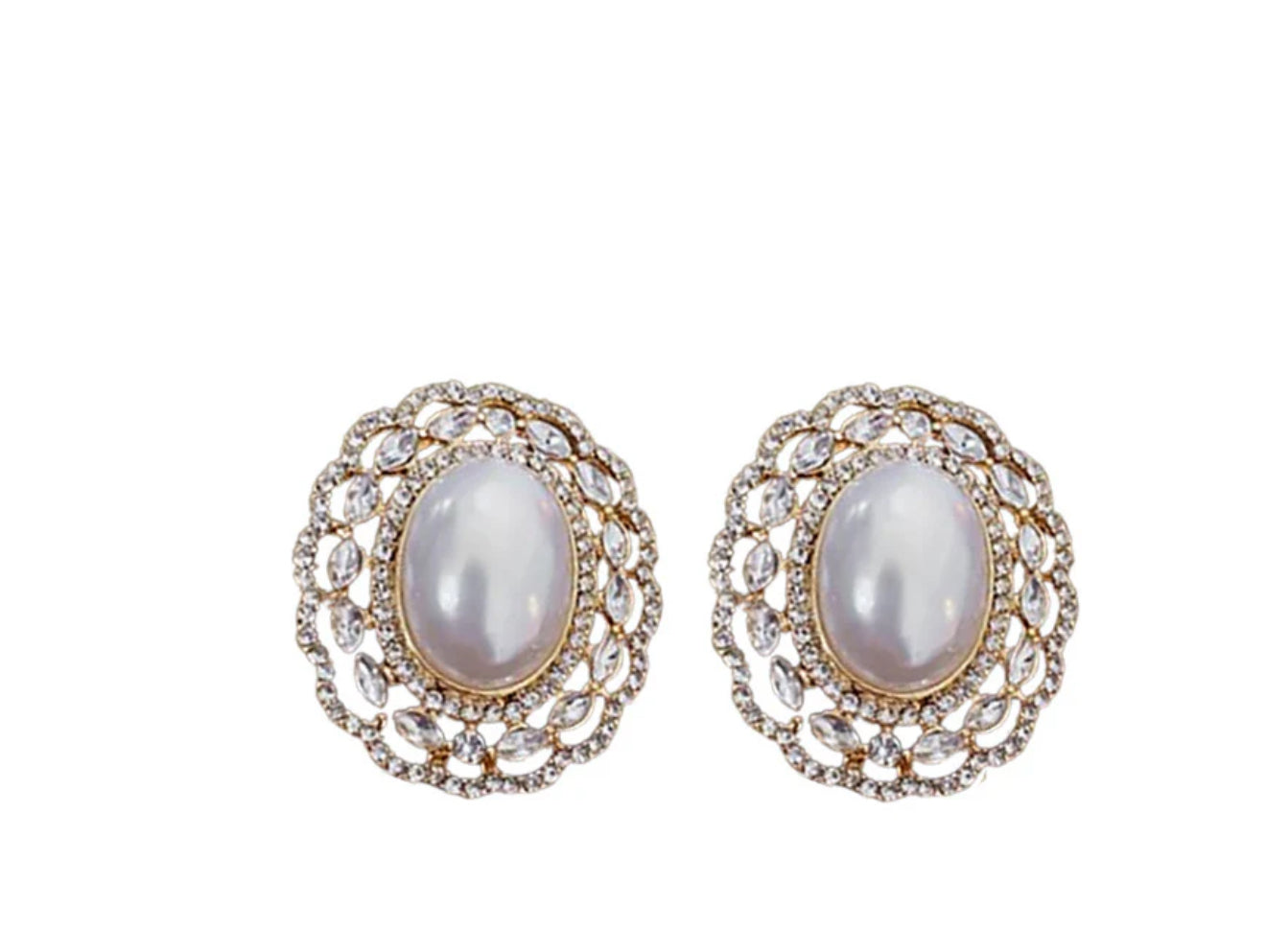 Petal-shaped 18k gold-plated studs with a luminous faux pearl center — romantic and refined.