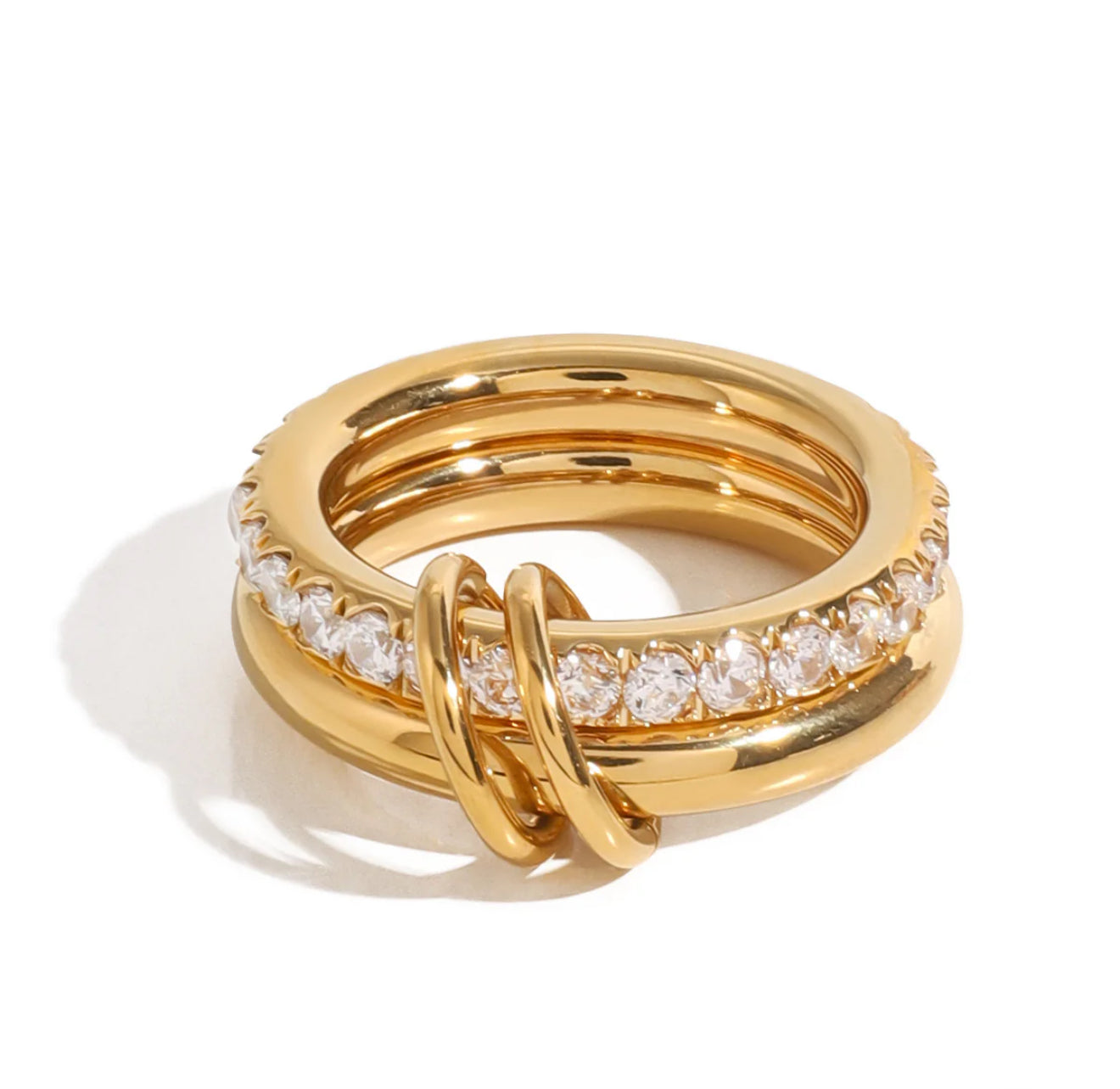 The Aria Ring is a foundation piece in any jewelry collection. Its curved, high-shine surface offers a sleek, sculptural feel while maintaining a soft and minimal profile. Crafted from durable titanium steel and finished with radiant 18k gold plating, it’s resistant to tarnish and perfect for daily layering or solo styling.
